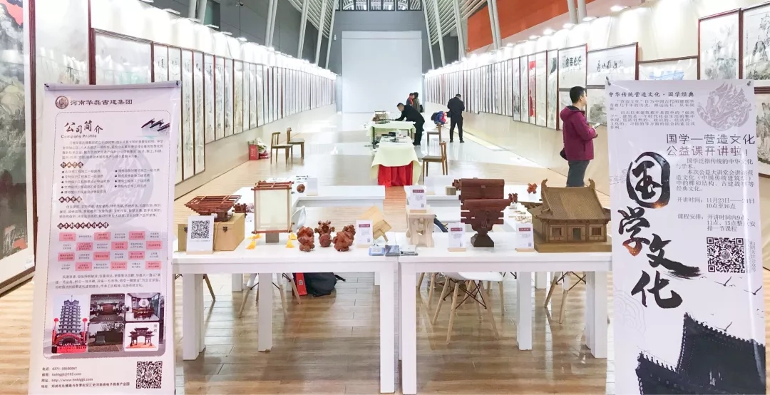 11月19日,“2019年列子文化全国书画名家作品展暨中国·郑州·列子文化周”在郑州经开区中大门国际购物广场开幕。此次书画展由河南省文学艺术界联合会、中共郑州市委宣传部联合主办,郑州市文学艺术界联合会和郑州经济技术开发区管委会承办,郑州经济技术开发区教育文化体育局和河南中大门网络科技股份有限公司协办。河南华磊古建集团受邀携国学文化经典参展。
