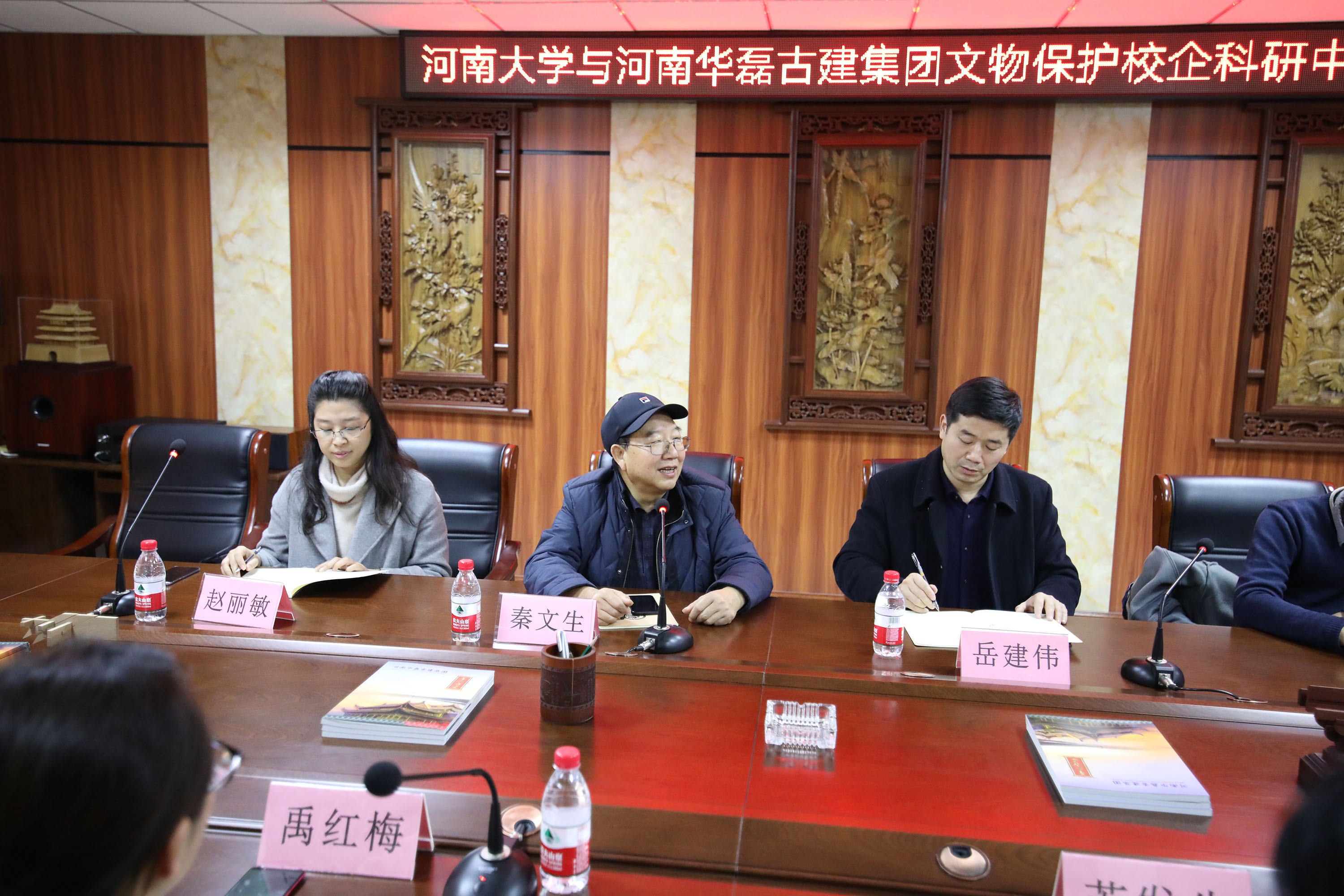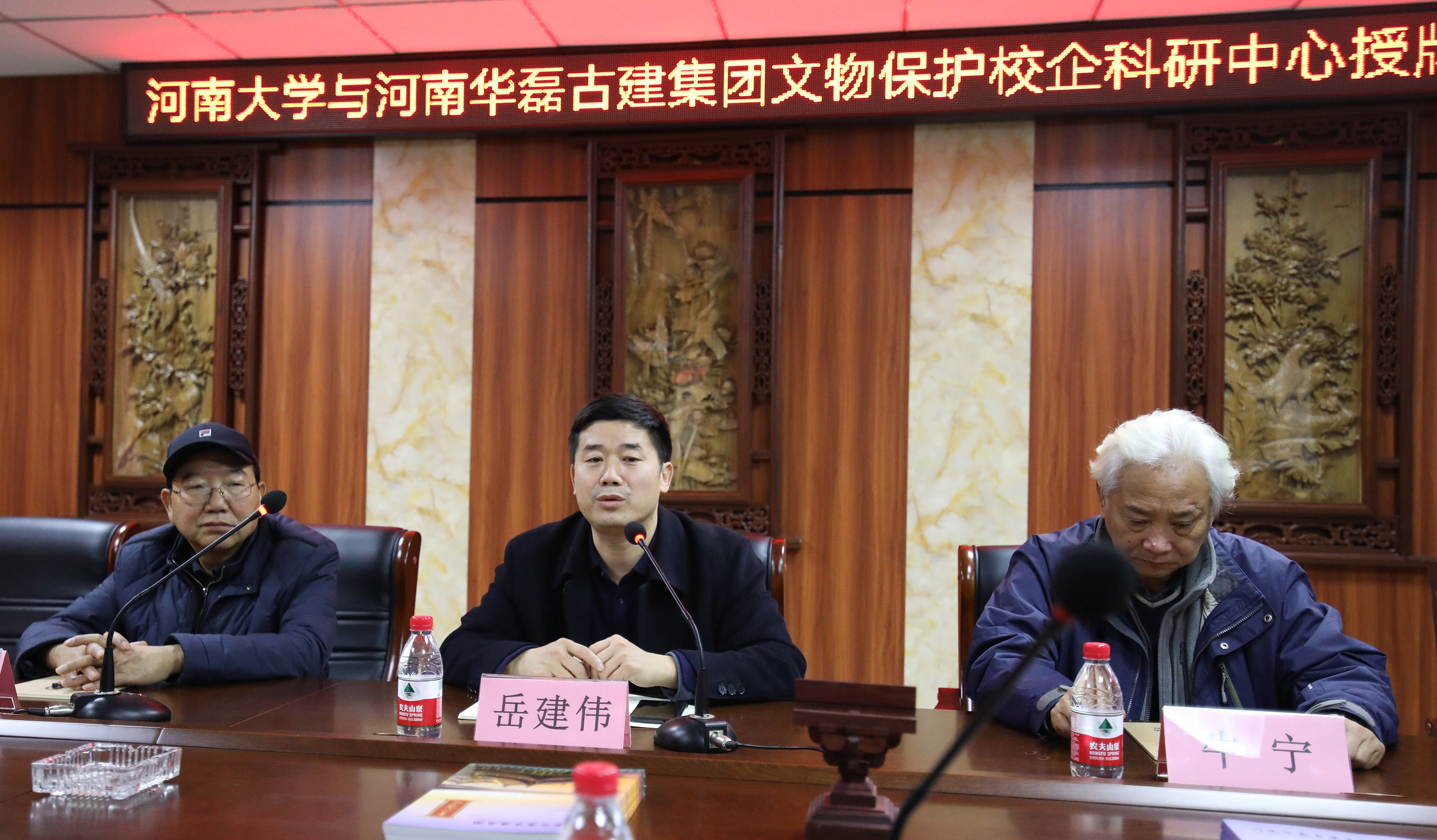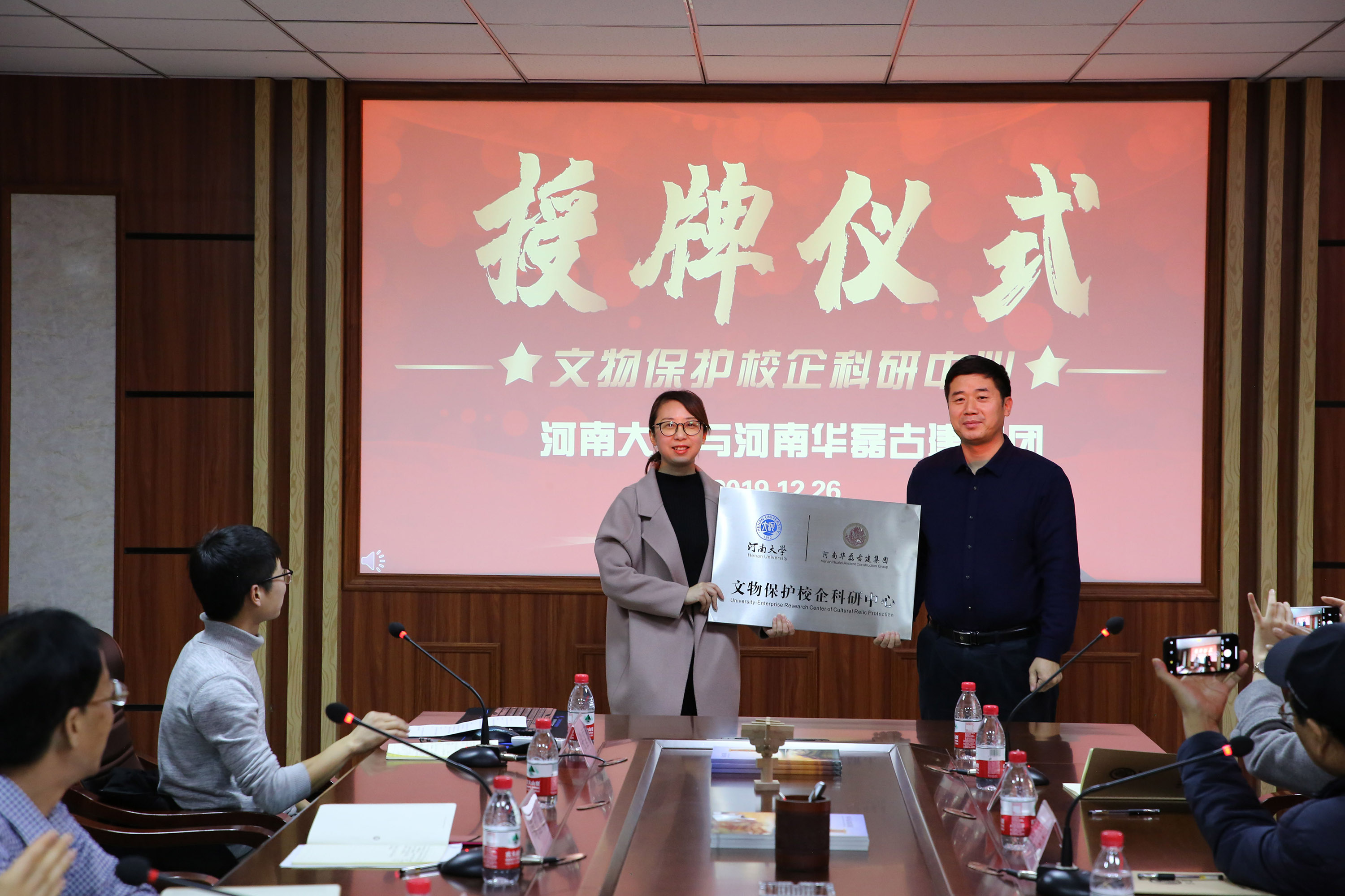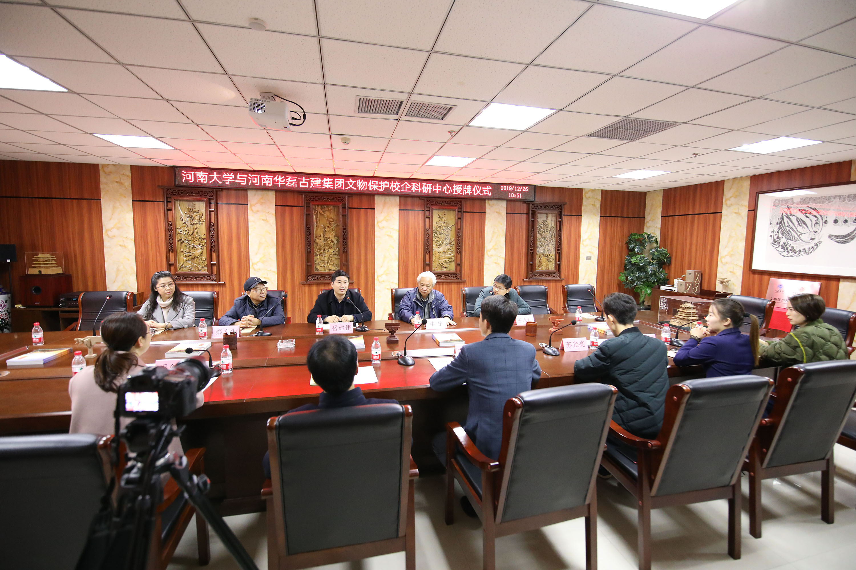 2019年12月26日上午,河南大学与河南华磊古建集团授牌仪式在河南华磊古建集团会议室进行。双方合作成立“文物保护校企科研中心”,力求在文物保护方面取得更多的科研成果,让文物活起来。