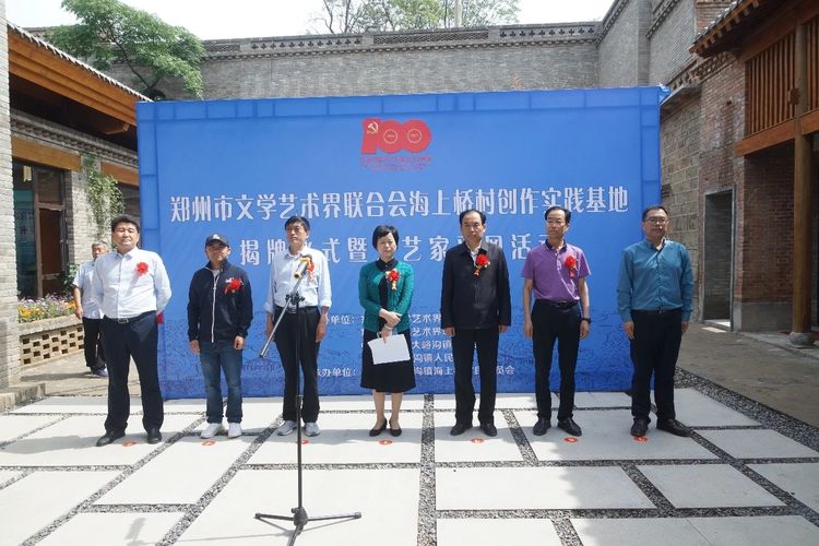 5月17日上午,郑州市文联海上桥村创作实践基地揭牌仪式暨文艺家采风活动在我市大峪沟镇海上桥村隆重举行。郑州市文联、巩义市文联、巩义市大峪沟镇委员会主办;巩义市大峪沟镇海上桥村民委员会承办;河南华磊古建集团、筑创设计公司、郑州市美协、作协、曲协、书协、摄协、音协、剧协协办。