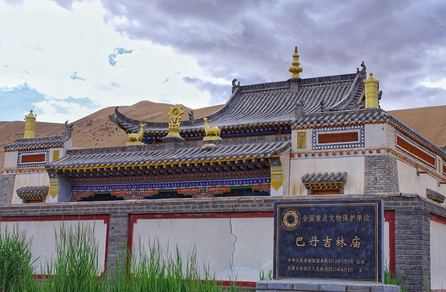 巴丹吉林庙—巴丹吉林沙漠腹地唯一的寺庙。它始建于乾隆年间(公元1755年),由于深处大漠、人迹罕至,一直保持着原貌。 其规模不大,占地仅273.7公顷,是一座上下两层的中式楼阁建筑。