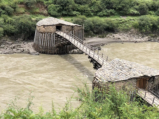 波日桥始建于元末明初,清道光年间重建,由杰出的藏族建筑大师唐通吉布设计,是一座木质石顶廊桥,波日桥是目前藏区保存年代最久、最完整、跨度最大的伸臂式木石质结构桥,整座桥没有用一颗钉、一块铁,每一个结合部均用木楔连接,气势雄伟、壮观,堪称桥梁史上的奇迹,被誉为“康巴第一桥”。