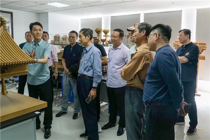 九三学社社员、河南华磊古建集团产品研发师苏光伟带领大家参观并介绍公司。